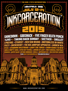 INKCARCERATION Music and Tattoo Festival promoters promise an epic year. “Building off such a strong inaugural year, we are so stoked to give our fans even more in year two. With Billboard chart-topping bands such as Shinedown, Godsmack and Five Finger Death Punch leading the way, tattoo artists from around the globe, and the historic backdrop of the haunted Shawshank Prison, INKCARCERATION 2019 will be the don’t miss rock event of the summer in the Midwest!”